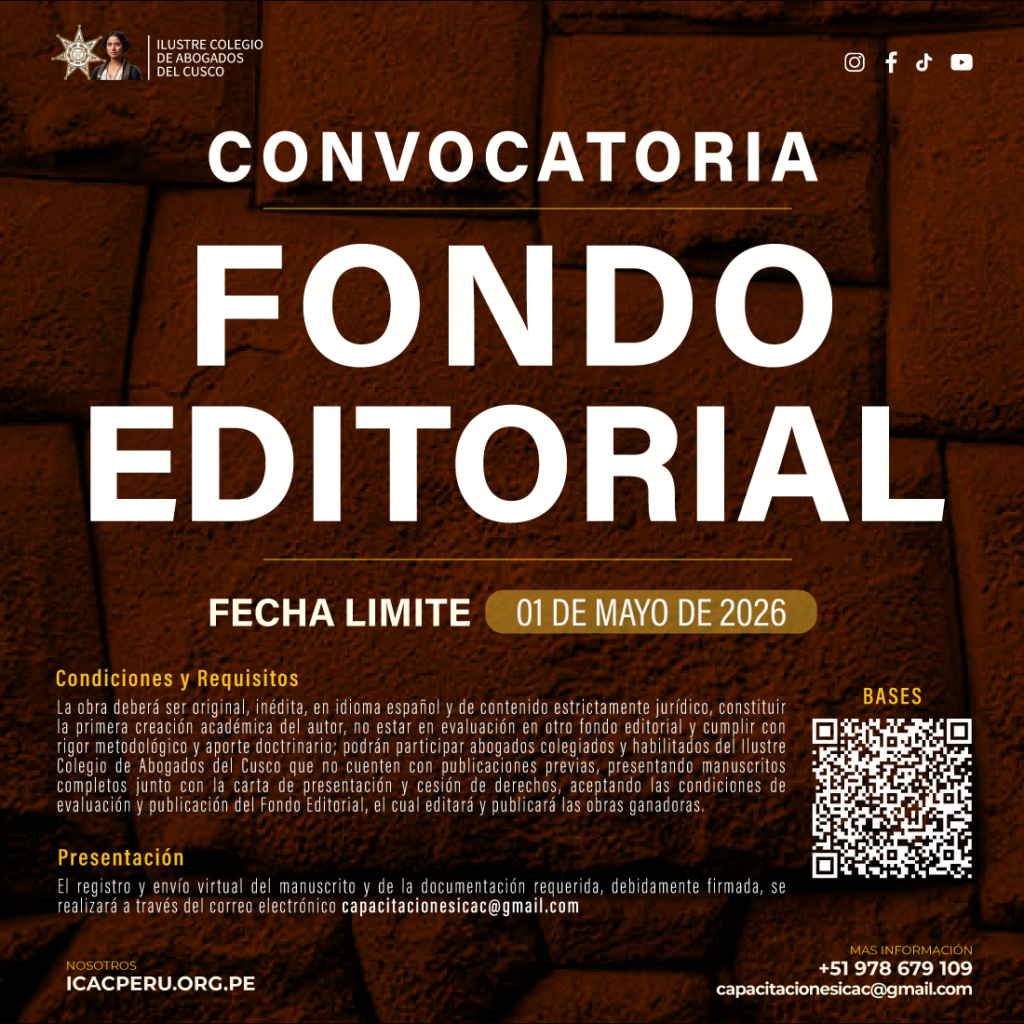 Convocatoria para la Publicación de Libros «Fondo Editorial» La Revista del Foro Cusqueño es una publicación académica–jurídica orientada a la difusión del pensamiento jurídico, la